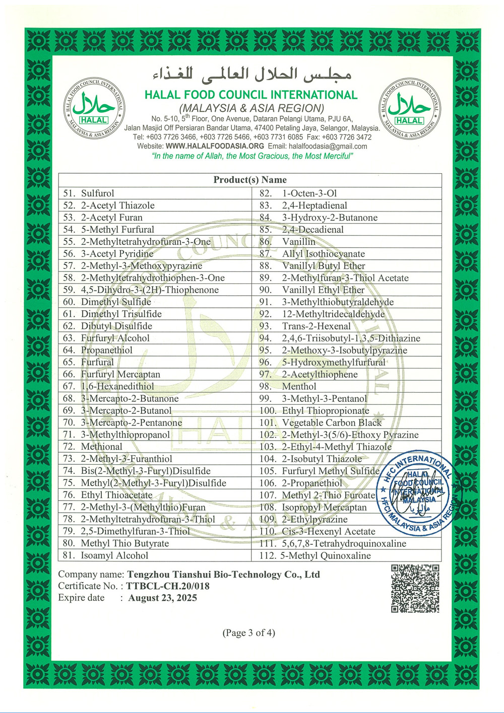 滕州市天水生物科技有限公司成立于2011年9月,是目前國內雜環類合成食品香料、日化香料和醫藥中間體生產經營的綜合性企業。坐落于山東省滕州市生物醫藥產業基地,總投資5000余萬元,占地面積約30000平方米,員工百余人。公司先后被評為高新技術企業、專精特新中小企業、科技型中小企業,建有市級重點實驗室1處,并先后獲得ISO9001質量體系認證、ISO22000食品安全體系認證、kosher認證和Halal認證。是香精香料及食品配料協會會員單位及滕州市中小企業協會理事單位。